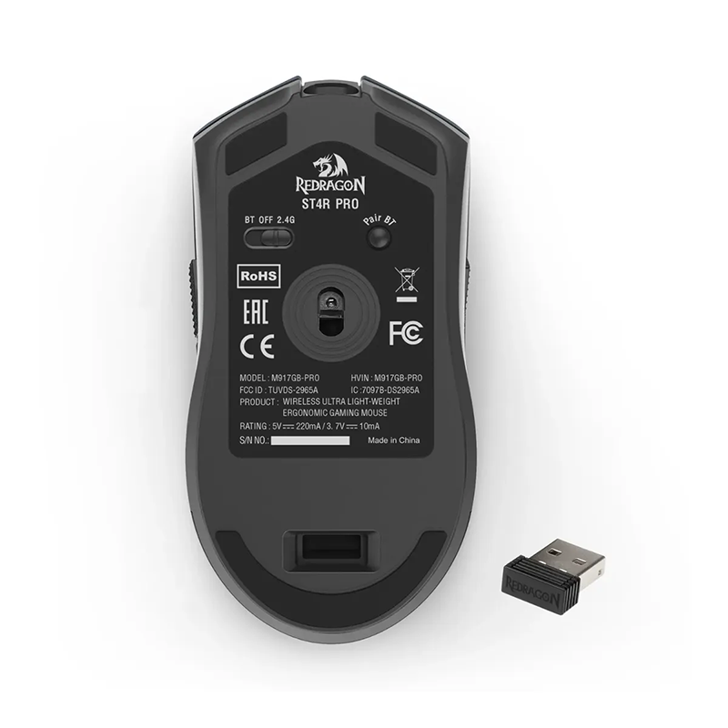 Con sus escasos 60 gramos de peso y los clásicos patines de teflón Redragon, el St4r Pro se desliza con suavidad máxima tanto en modo inalámbrico como en modo cableado, gracias a su cable de paracord de máxima calidad.